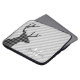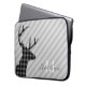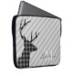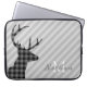 Stylish plaid deer profile and grey striped laptop sleeve with elegant monogram.