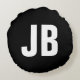Trendy plain simple bold monogram initials black round pillow
