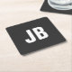 Trendy plain simple bold monogram initials black square paper coaster