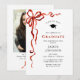 Trendy Red Bow Ribbon PHOTO Graduation Party Invitation