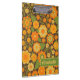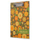 A bold, floral design with colourful shades of gold, orange and green with a fun colour block to add your name or any text. The crazy flower pattern has a variety of colours.