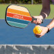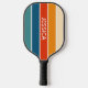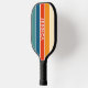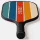 Trendy personal pickleball paddle featuring wide retro stripes in a retro inspired colour palette. Large personalizable name in centre. Clean, simple rounded minimalist typography. Fully personalizable. Professional grade with optional cover and Official USA Pickleball Certification. Makes a great business gift for any pickle baller.