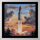 This trendy rocket launch with blue sky and grey clouds can be used anywhere in a child's bedroom, office space or home.