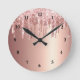 Trendy Rose Gold Glitter Drips Graphic Round Clock