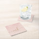 Trendy Rose Gold Glitter Fancy Initials and Name Square Paper Coaster