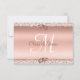 Ce design en or rose tendance RSVP s'accorde avec les invitations métalliques mariage damassé. Rose damask parties scintillant or sur le haut et le bas est accentué avec des anneaux mariages, et encadre la typographie script tendance. Le monogramme de la mariée et du marié est à l'arrière dans un élégant script propre police. **Il n'y a pas d'or rose réel, d'encre métallique ou de parties scintillant sur cet article. Les détails de l'or et de la parties scintillant rose sont simulés.