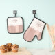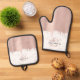 Trendy Rose Pink Gold Metallic Drips Monogram Oven Mitt & Pot Holder Set