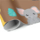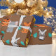 A trendy safari themed wrapping paper featuring lions, giraffes, zebras, tigers, and elephants on a brown background. Great for a birthday party, order yours today!