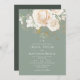 Modern stylish sage wedding invitation with watercolor gold greenery and ivory roses, modern calligraphy. Classy and elegant, simple and modern invitation.