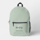 Trendy Sage Green Black White Monogram Name Printed Backpack