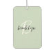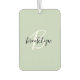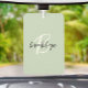 This elegant personalized car air freshener features a monogram and first name in modern black and white script on a trendy sage green background.