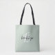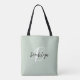 Trendy Sage Green Black White Script Monogram Tote Bag