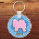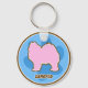 Cute trendy Samoyed merchandise for dog lovers has a pink silhouette, with a bright blue background and a paw print. Outlined in chocolate brown and white. Funky and cool pet gifts!