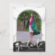 Create a stunning graduation photo announcement featuring trendy arch photo on the front in black and gold accented with faux gold glitter sparkle with chic handwritten script typography for the title GRADUATE accented with a graduation cap or mortarboard in white. The back side features one photo and your custom text to include details about your graduate. ASSISTANCE: For help with design modification or personalization, colour change, resizing or transferring the design to another product, contact the designer BEFORE ORDERING via the Zazzle Chat MESSAGE tab below or email makeitaboutyoustore@gmail.com.