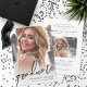 The back transforms into a stylish graduation party invitation, featuring a second photo in the centre inside a rounded rectangle. Below, there's space for event details such as the date, time, location, and RSVP information, along with a heartfelt message from the parents celebrating the graduate’s accomplishments. Fully customizable, you can edit the text, fonts, and colours to match your vision. Perfect for sharing exciting news and inviting loved ones to celebrate!