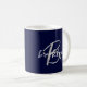 Trendy Script Monogram Navy Blue Grey White Coffee Mug