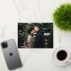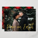 Festive holiday photo card featuring "Peace on Earth" displayed in a gold foil script. Personalize the foil holiday card with your horizontal photo, custom greeting, family name, and the year. The Christmas photo card reverses to display a red and green plaid pattern.