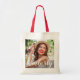 These bags were super cute (I purchased 3). The material is more of a canvas look & feel. The colour of the bag is slightly off white, but the letters look exactly as pictured. I took 3 photos in different lighting. Would recommend! I liked how there was an option to choose the font and colour of the name. The words are legible and the colours are exactly as pictured.