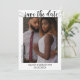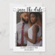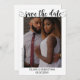 Modern wedding Save the Date template card with trendy script text with hearts. Template feature one vertical photo. The photo and text can easily be personalized for a unique one of a kind design for your special day.