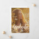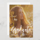 This trendy casual graduation announcement features two photos of the college or high school graduate. Casual, modern white script appears on front photo overlay along with a photo of the graduate on the back with simple black font for the announcement. You can adjust the wording on the back of the card to make this either a simple graduation announcement, or a grad party invitation. A stylish and simple design for this year's graduation!