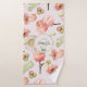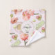In gentle shabby chic colours of vintage pink and green and with a round pink and green badge with a monogram.