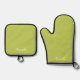 Trendy Soft Chartreuse Oven Mitt Pot Holder Set