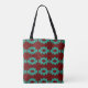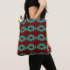 Aztec inspired pattern tote bag with a turquoise blue graphic on a burgundy background. Add some ethnic spice to your accessories!