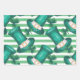 Trendy and cool, these wrapping paper sheets were made especially for St. Patrick's Day. The design features top hats, shamrocks, strips, all in various shades of green. Order yours today!