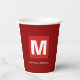Trendy stylish dark red white monogram your name paper cups