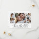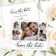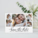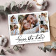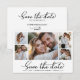 Elegant Minimalist 5 Photo Collage Wedding Save The Date Cards, showcasing a fashionable calligraphy script and a sophisticated in classic black and white. This collection is specifically designed for modern weddings, exuding an enchanting and romantic allure. With a gracefully arranged 5 photo grid collage and captivating hand-lettered swash tail font, these cards capture the essence of contemporary elegance. Easily customize each card to reflect your unique style by incorporating cherished wedding details and pictures, offering a refined and sophisticated means to announce and celebrate your extraordinary day.