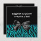 A trendy teal and black zebra print boy baby shower invitation with a modern black ribbon tied into a bow. Personalize this matching set by adding the name of the mother-to-be. Flat printed image, not actual ribbon.
