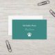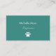 Trendy Dog Groomer business card, with a white paw print design on a teal green background. With black and white lettering, you can add you own information. Great for promoting your pet services business!