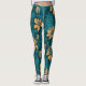 Trendy Teal Leaves Orange Tropical Floral Pattern Leggings