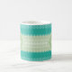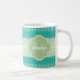A trendy bright teal and lacy light green striped knit pattern mug. Personalize this stylish knitted design by adding your name and monogram. This is part of the Arcadia Knit Pattern With Nile Green Monogram Collection. Flat printed image, NOT made with knitted yarn or lace.