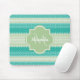 A trendy bright teal and lacy light green striped knit pattern mousepad. Personalize this stylish knitted design by adding your name and monogram. This is part of the Arcadia Knit Pattern With Nile Green Monogram Collection. Flat printed image, NOT made with knitted yarn or lace.