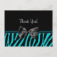 Trendy Teal Thank You Zebra Print With Ribbon Postcard