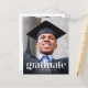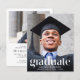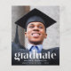 A budget-friendly modern graduation announcement and party invitation that features your grad's photo overlayed with "Graduate" in trendy large white text and their name, school and class year in simple white typography. On the back, add an additional photo and the grad party details.