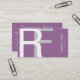 Monogrammed in huge lettering that fills the business card top to bottom and overlays the first name initial over the last name initial with a slight variance of colour, name and position title at a 90 degree angle on right edge of card - this has a textured overlay that will texture your (LAST NAME INITIAL ONLY ) monogram and background colour but leave the First Name initial , name and title clean - the back of the card leaves all of the text clean- CHANGE COLOR of the background by choosing Customize, use the edit drop down box for background colour - the one I have chosen here is a medium plum - the textured appearance will remain. (Do Not forget to change the background colour to match on the back of the card) NOTE: THIS card is NOT truly Textured, it is an artistically designed image to make it appear textured.