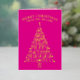 Trendy Tree Non-Photo Folded Hot Pink Gold Foil Holiday Card