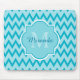 Trendy Turquoise Chevron Zigzag Name and Monogram Mouse Pad