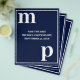 A simple clean minimalist design in trendy navy blue with a text pairing of fonts in bold lower case monogram letter text templates and upper case font templates for the details that are easy for you to personalize. Just change the letters to your own right on the product page. All elements are fully customizable.
