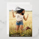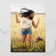 This graduation card features trendy typography and a large photo. On the front, "Graduate" is written in real gold foil typography at the bottom. Below, you can add the graduate's name and graduation year. The back of the graduation card includes a template to add graduation party details.