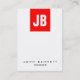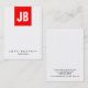 Trendy unique red white vertical plain monogram business card