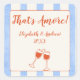 Trendy whimsical hand drawn wedding stickers. Easy to personalize names and year. Watercolor blue stripes with orange red border with typography in a hand drawn style.