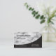 This elegant business card has a slab of white marble in the top right corner with a gentle curve against a dark charcoal background.