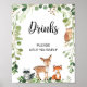 Trendy Woodland Modern Drinks Baby Shower Sign