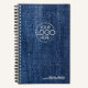 Classically styled notebook prominently featuring a business or personal logo over lightly worn blue denim image covers. Personalizable logo and name (or text lines). Trendy cool understated elegance. Stylish modern serif typography. Notebook with college ruled lines or options of sketch, grid, etc.Hard cover available. Contact for assistance in personalizing or customizing to your individual wishes.