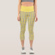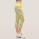 Trendy Yellow and Grey Heart Pattern Capri Leggings. Yellow hearts on a grey background.