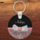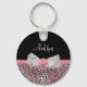 A precious pink print keychain with a cute sheer white bow embellished with feminine pearls and a rosette ribbon in the centre. Any girly girl who loves pink and black would love to have her name added to this chic and stylish animal print design. Flat printed image, not actual ribbon.