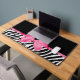 A trendy black and white zebra print desk mat decorated with a picture of a chic hot pink ribbon tied into a girly bow. Personalize this fashionable pink and black animal print design by adding the name of your favourite girl. Flat printed image, NOT an actual bow.